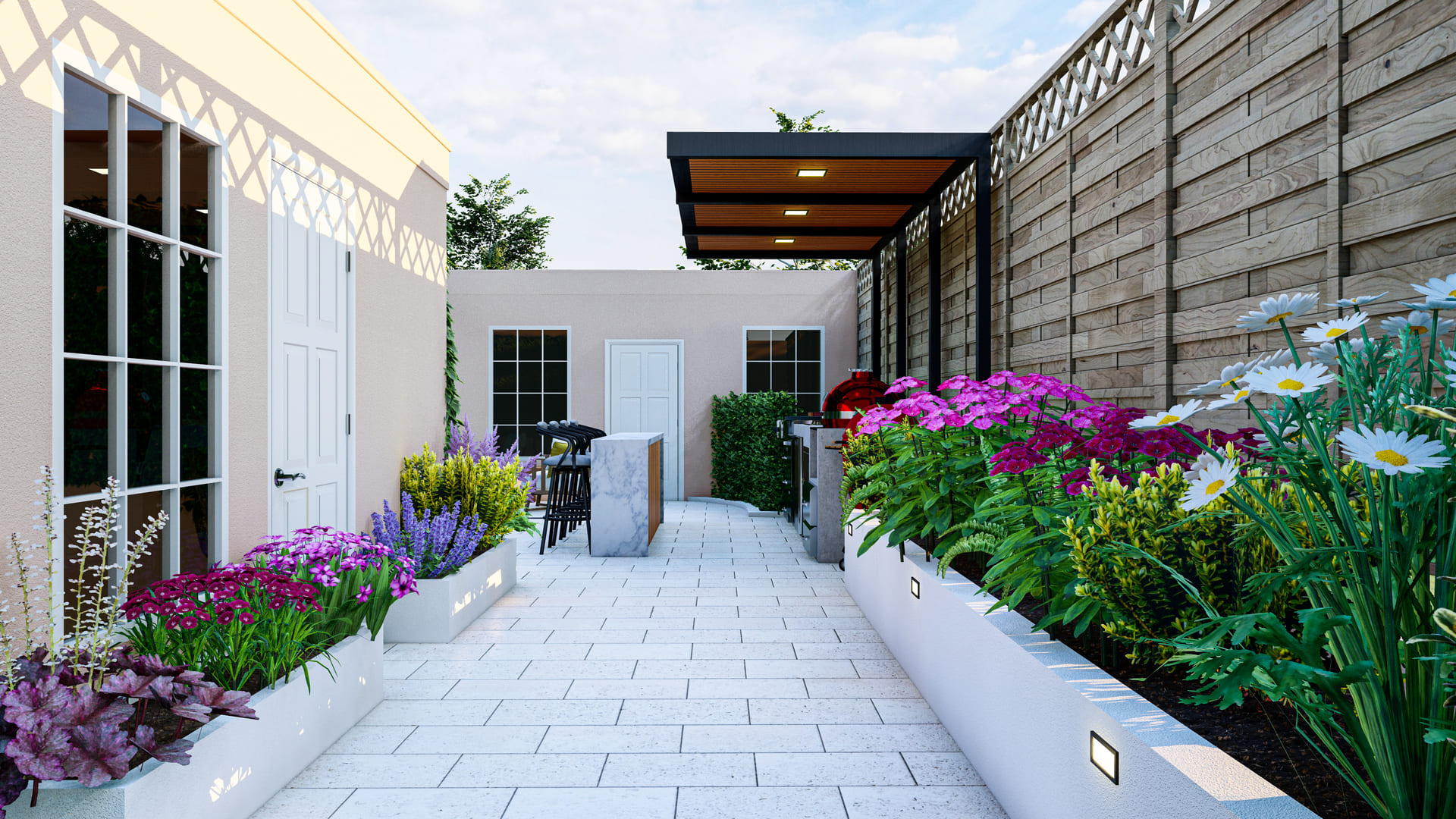 - Built-in planters or raised beds